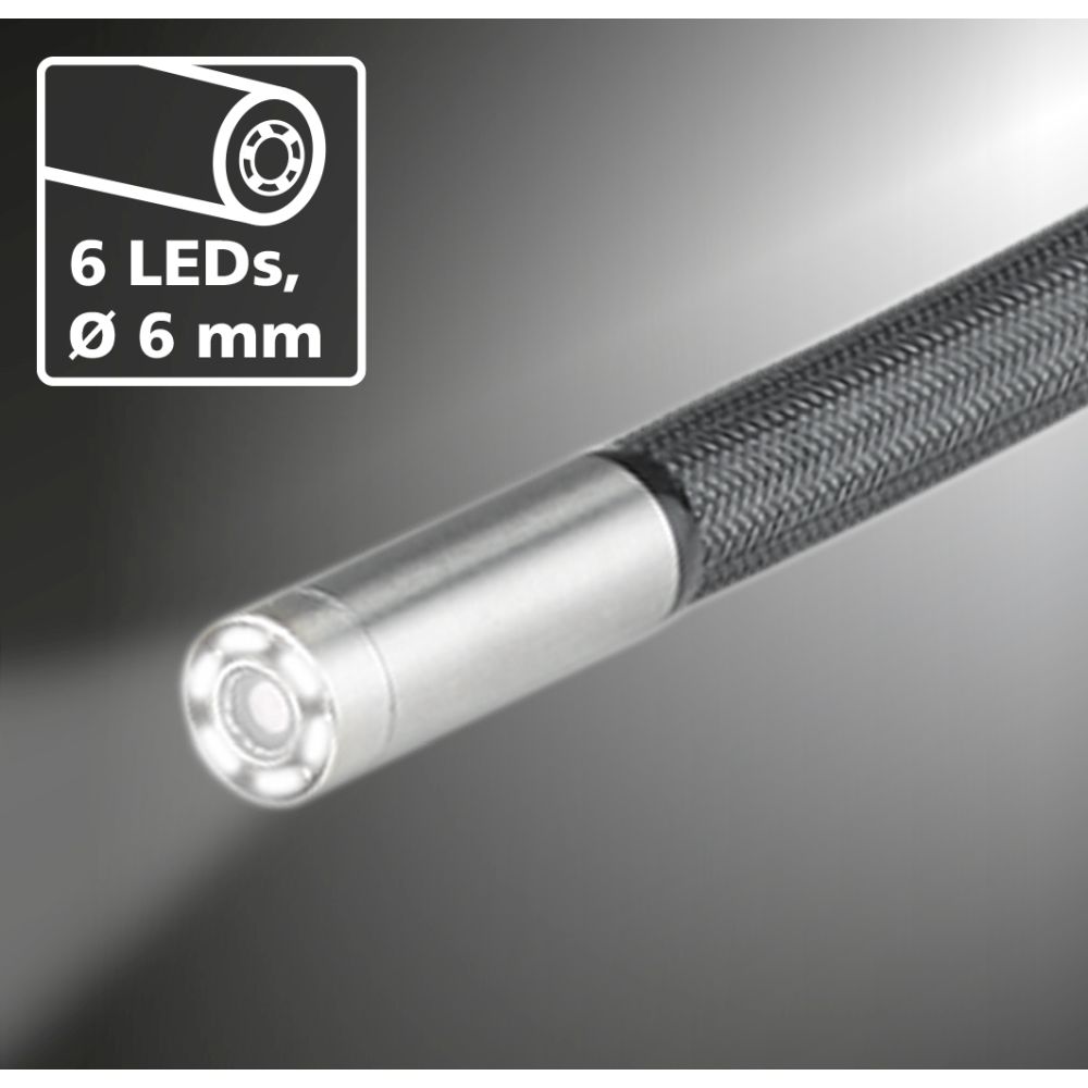 Beschreibung:Diese steuerbare Kameraeinheit für den VideoInspector 3D mit 2 Meter langer Sonde bietet hohe Flexibilität bei komplexen Arbeiten und ist optimal für kleine Öffnungen. Per 3D-Steuerung lässt sich der wasserdichte Titan-Kamerakopf mit einer maximalen Beweglichkeit von 160° schnell auf die optimale Perspektive justieren. Damit können schwer zugängliche Stellen untersucht werden, die mit starren Kamerasystemen nicht sichtbar sind. Durch die Objektausleuchtung mit sechs Keramik Hochleistungs-LEDs lassen sich auch unter schlechtesten Bedingungen klare Aufnahmen erzielen.