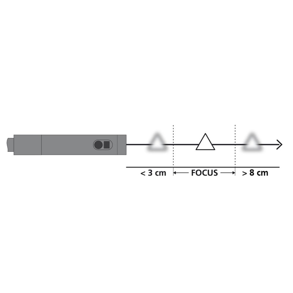 | Scherpte-diepte-bereik (DOF) | Front: 3 … 8 cm / Opzij: 2 … 5 cm |